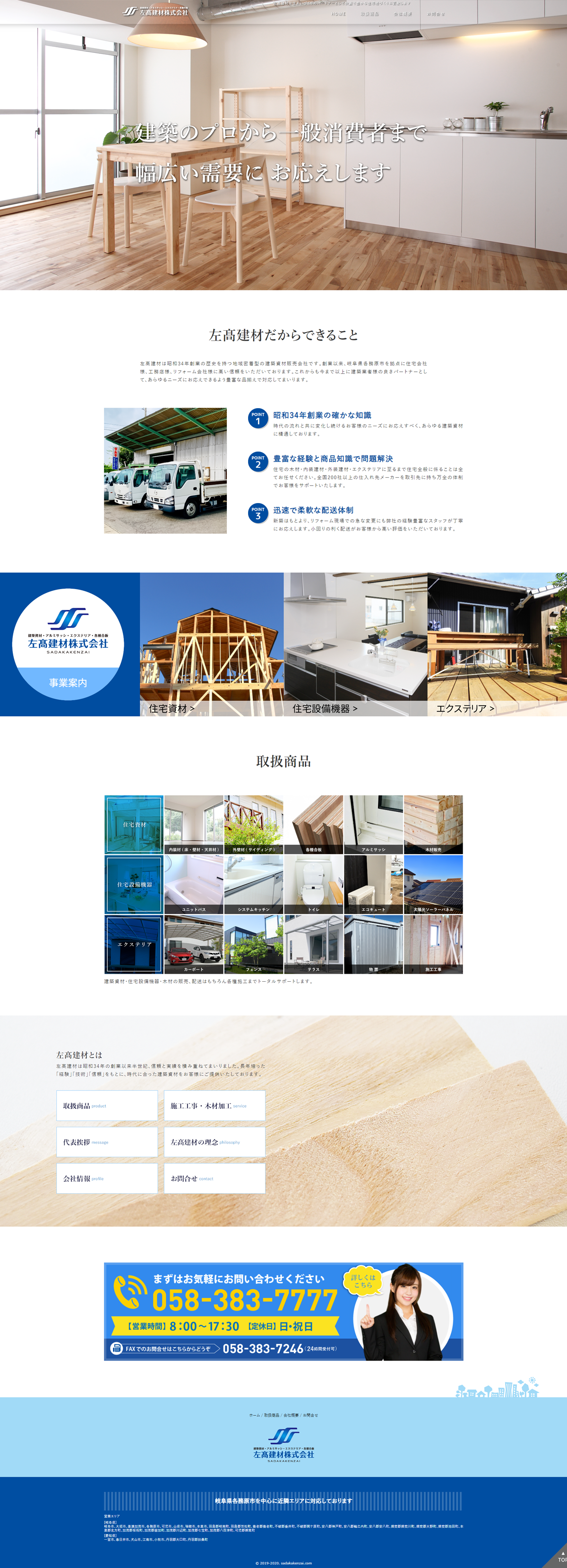 昭和34年創業、建築資材販売会社の左髙建材様より新規サイト制作をご依頼いただきました。
